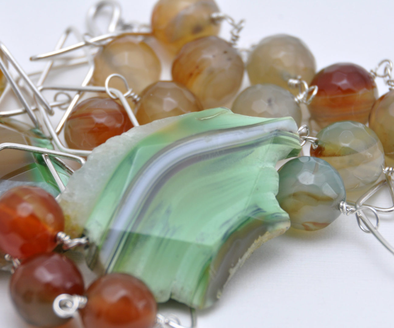 Collar Ágatas Verde – Marrón y Cadena de Plata en Rombos