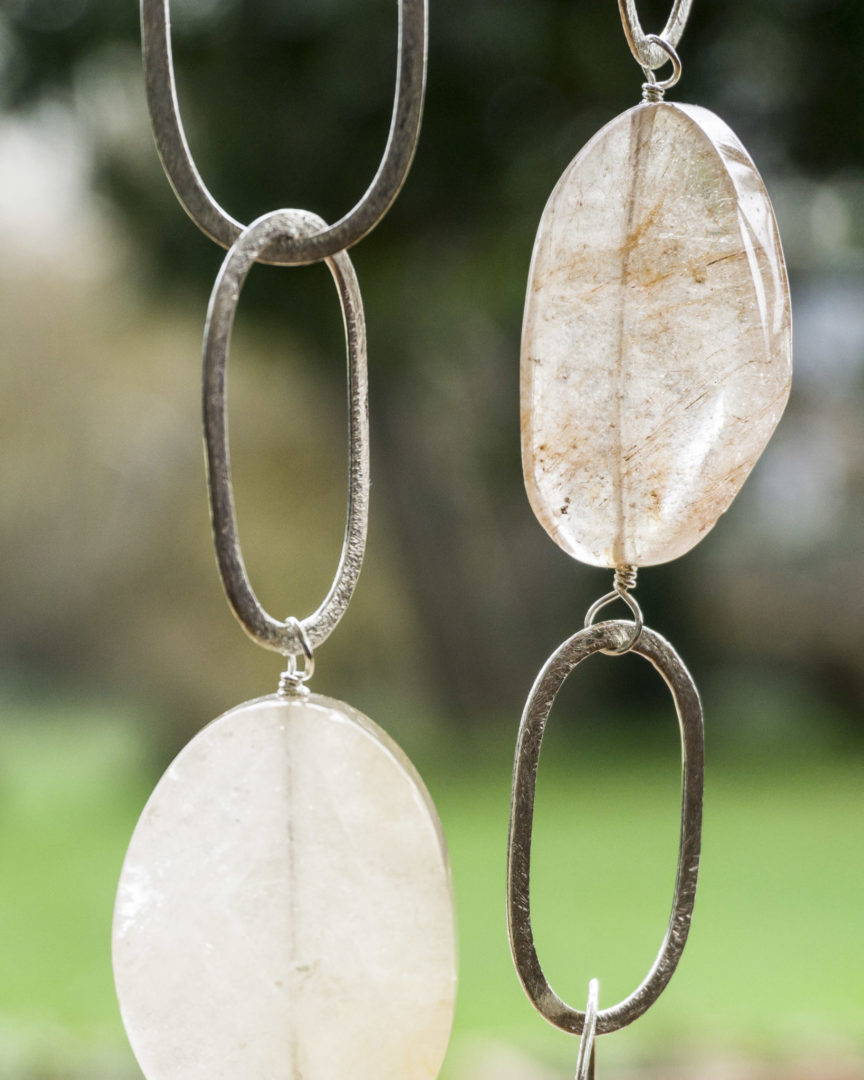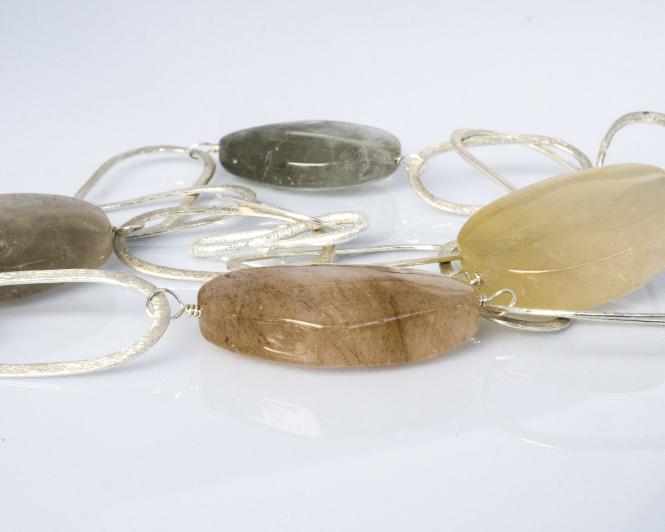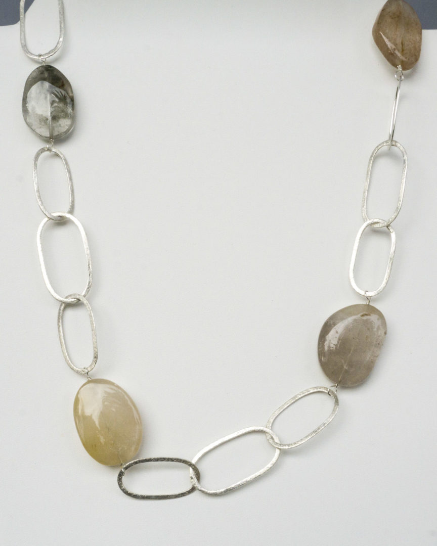 Collar en Plata y piedras de Cuarzo musgoso y Cadena de plata con arandelas planas ovalada de 3 x 1,7 mm.
