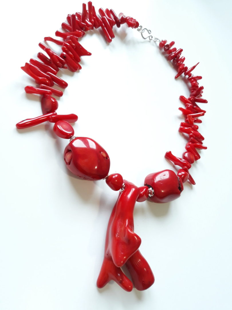 Collar Gargantilla de Coral Rama Central y 2 Bolas