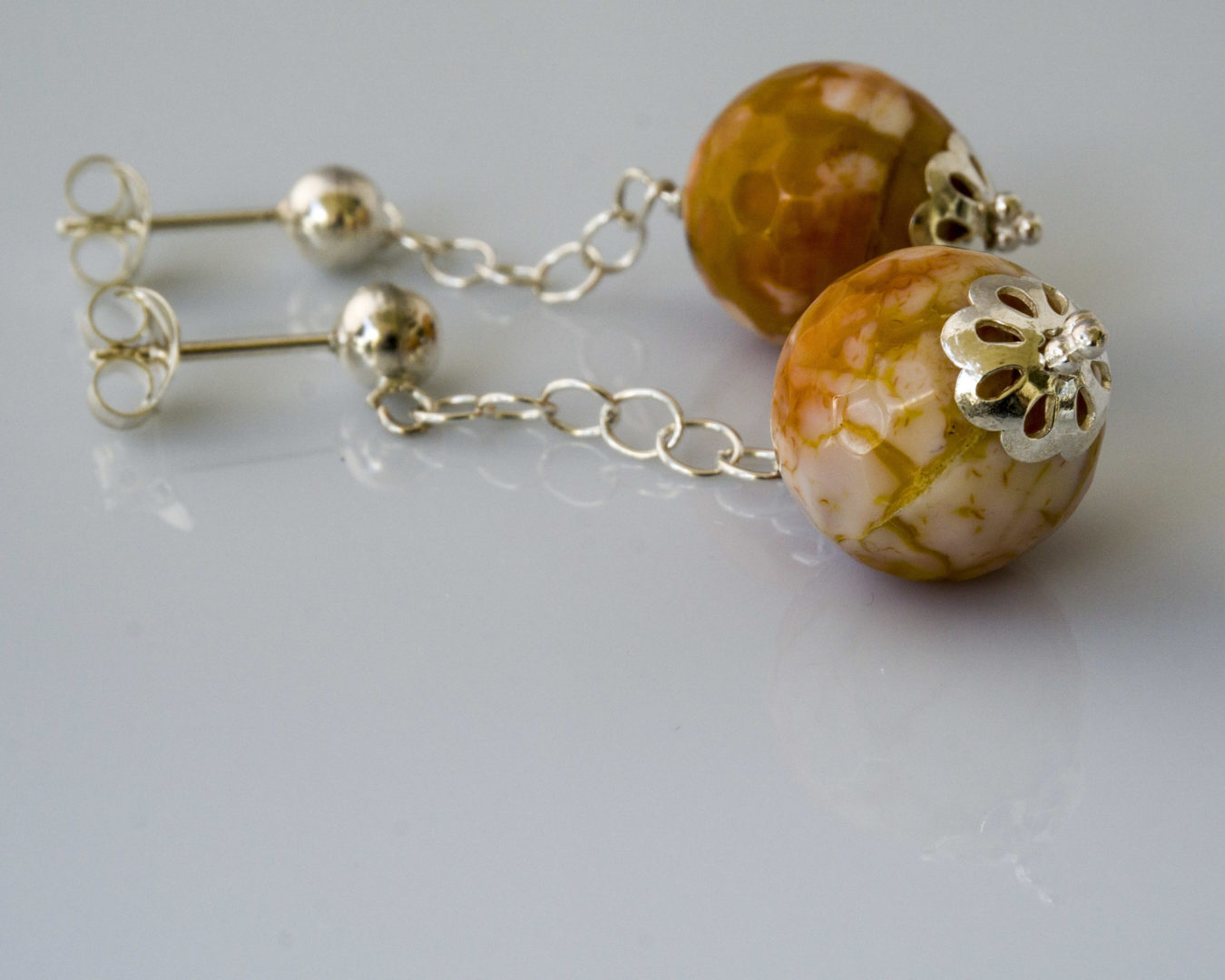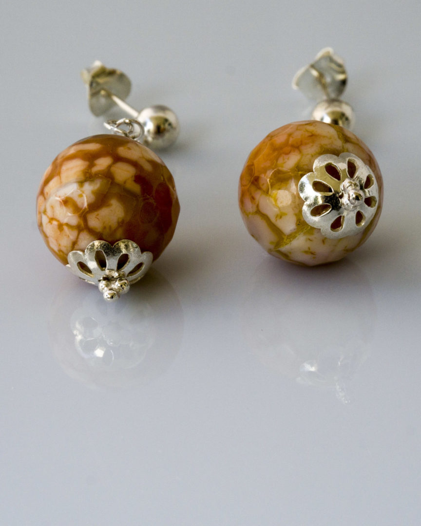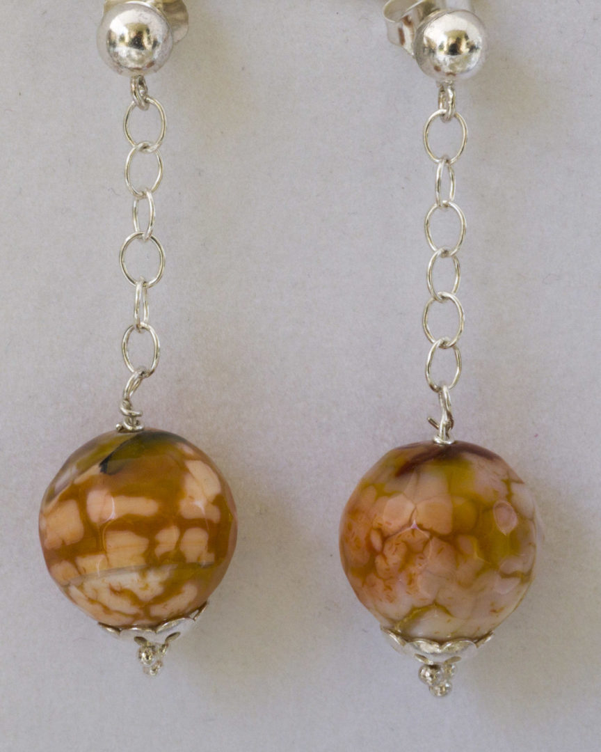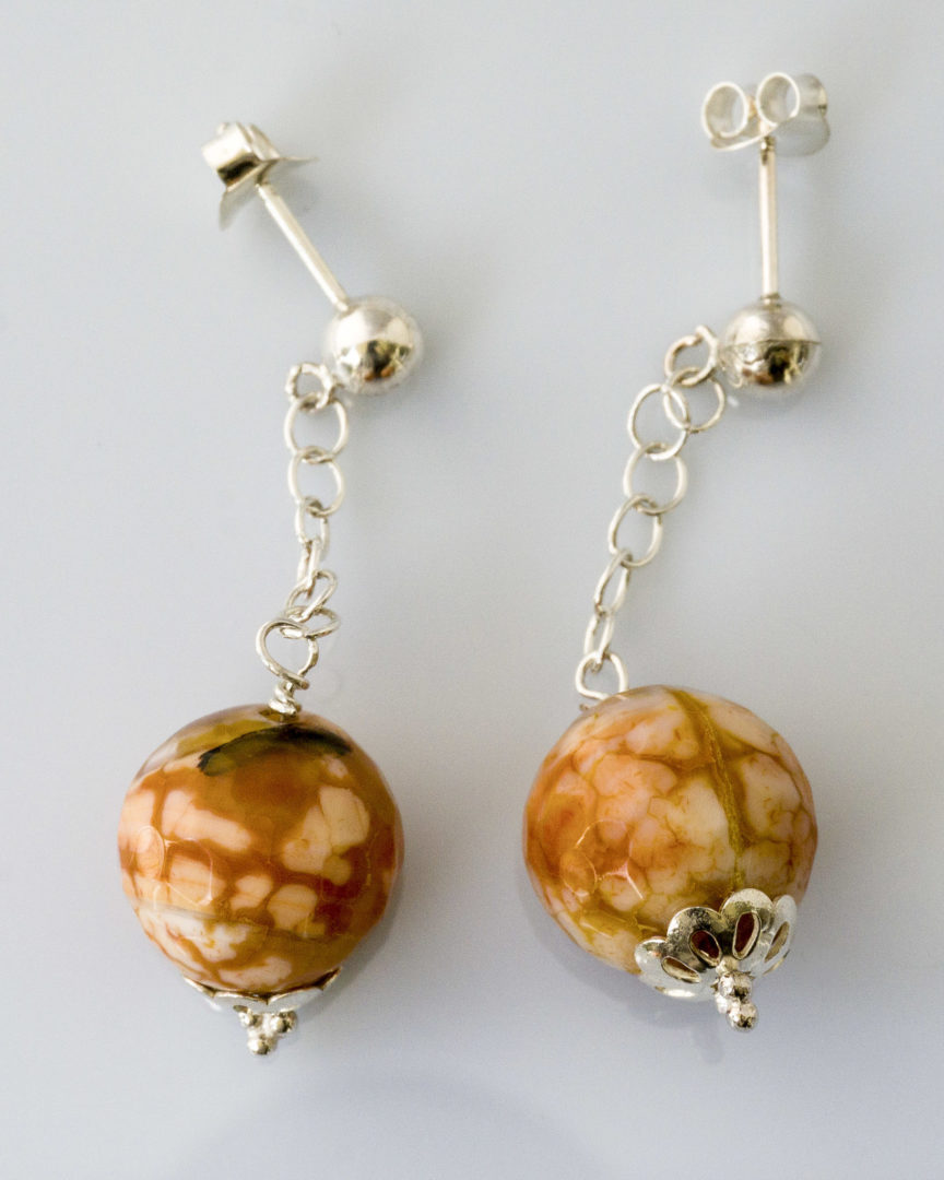 Pendientes en Plata con piedras de Ágata craquelada facetadas naranjas con cadena